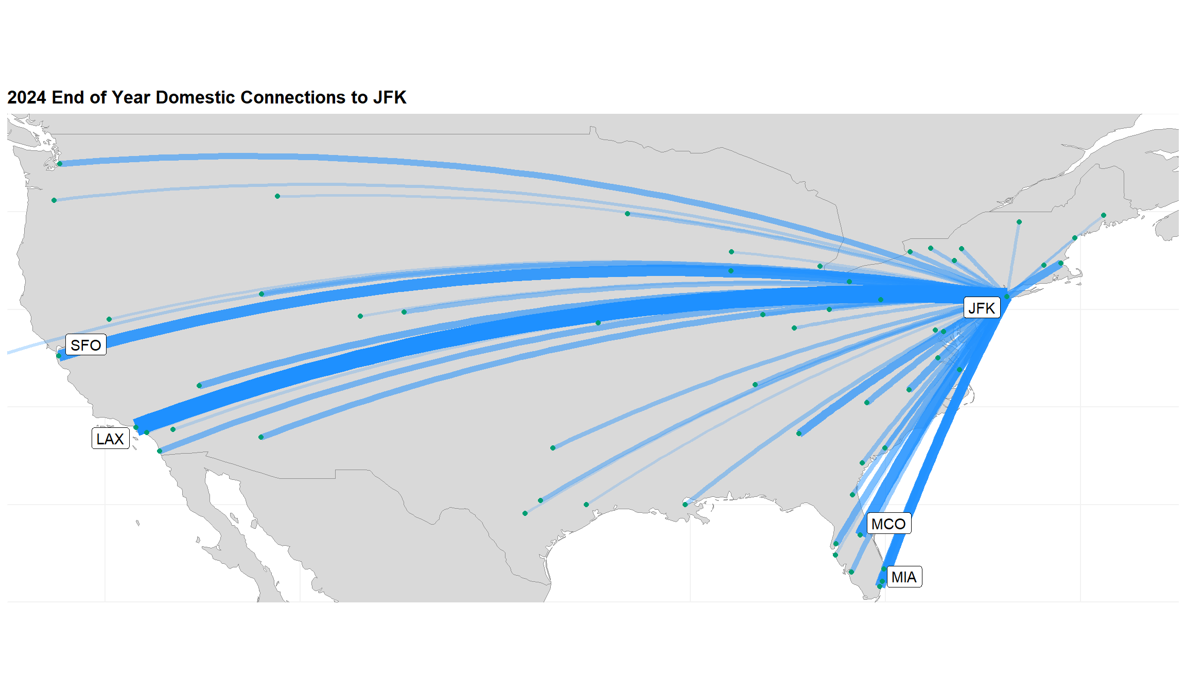 Rather than looking at specific airports at the very end of the year, this simple choropleth presents where flights from JFK departed to in December of 2024.